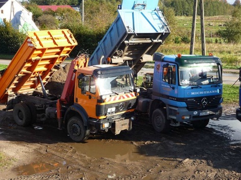 MICH TRANS Usługi Budowlane i Transportowe to rzetelna i solidna firma. Stawiamy na wysoką jakość oferowanych usług. Dlatego posiadamy sprzęt, który sprosta trudnym warunkom terenowym, m.in. koparko-ładowarka JCB 3CX SM (na równych kołach); wywrotki z napędami 6x6, 4x4 - Mercedes-Benz, Man; przyczepy wywrotki typu tandem; wywrotkę z napędem 4x4 z HDS, wywrotkę Star 1142 z przyczepą.
